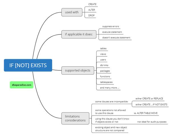 You would use the IF NOT EXISTS option when you are trying to create an object, and you don’t know if the object exists or not. With this clause, you are telling Oracle to create the object if the object doesn’t exist, otherwise supress the error. Have a look at